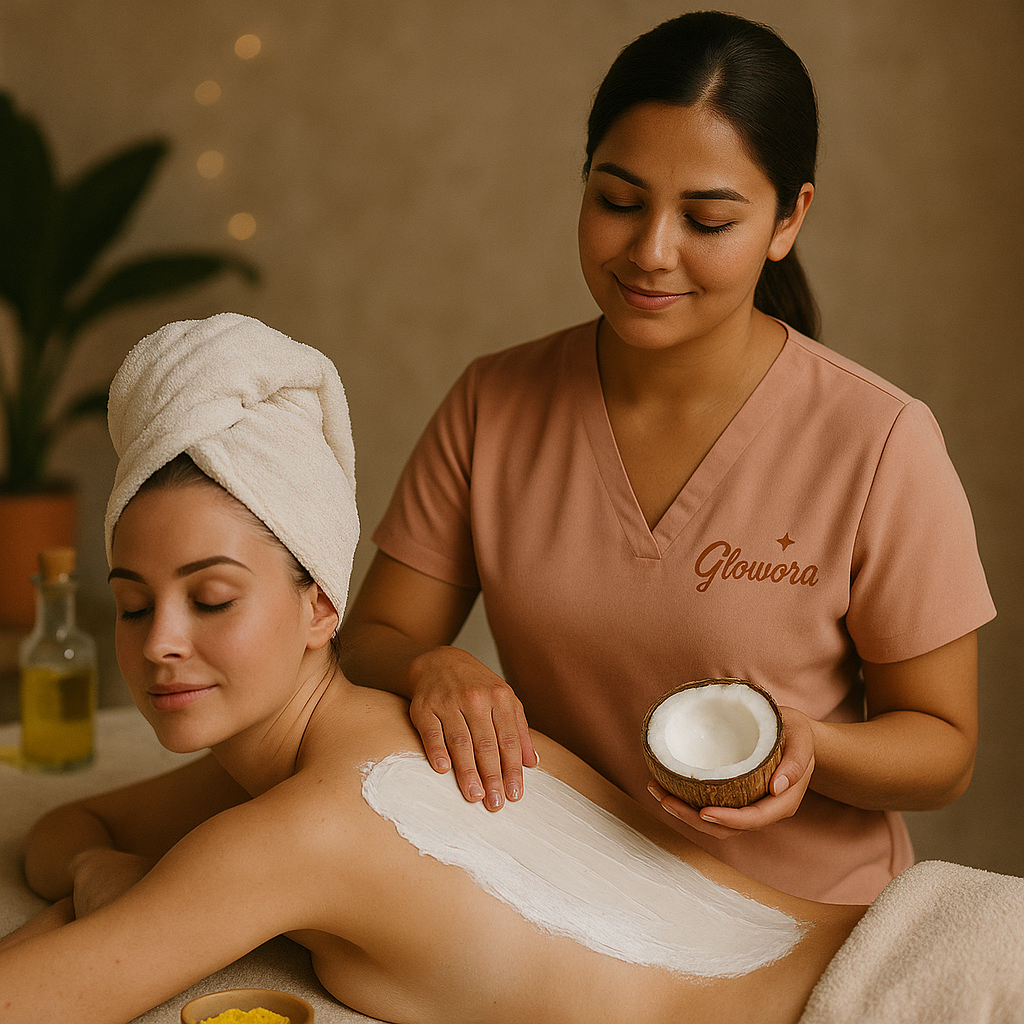 Indulge in the royal glow of our signature Cleopatra Bath — a luxurious journey that begins with a traditional Moroccan bath to deeply cleanse and purify the skin, followed by a full-body mask enriched with aromatic oils for nourishment and softness. The experience ends with a rich coconut body mask that delivers deep hydration, leaving your skin silky, radiant, and beautifully refreshed.