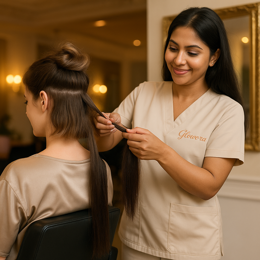 Luxury Indian nano-crystal extensions that blend seamlessly with your natural hair. Lightweight, long-lasting, and extremely natural, these extensions add stunning length and volume without damaging your hair.