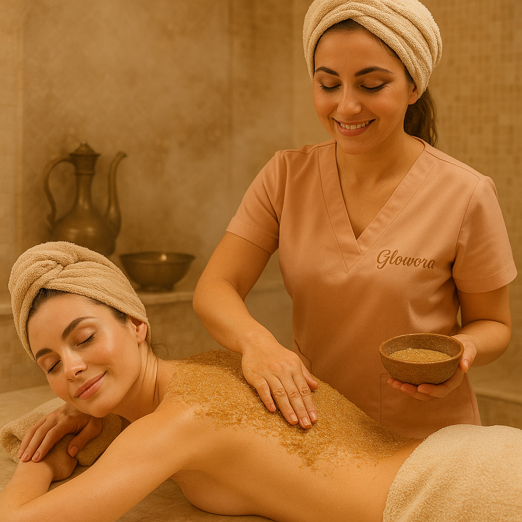 Experience the beauty secret of Sudan with our Delka Scrubbing Ritual, crafted from 100% natural ingredients. This luxurious body treatment gently exfoliates, softens, brightens, and deeply hydrates your skin, leaving it silky smooth and naturally radiant.